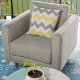 Modern throw pillow features a trendy chevron pattern in white, yellow, and gray.