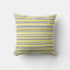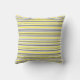 This modern throw pillow features thin stripes in yellow, white and grey.