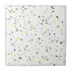 This ceramic tile features a faux terrazzo pattern with tiny specks in yellow and grey shades on a white background. Customize it with your own colors by clicking on Edit design.