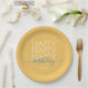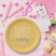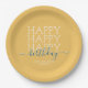 Modern yellow Happy Birthday paper plate