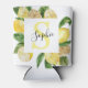 Modern Yellow Lemons Frame & Leaves With Name Can Cooler