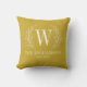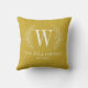 A modern monogram yellow throw pillow with laurel leaves. Adds an elegant touch to your home decor. Personalize it with your Initial, name and wedding date. Designed for you by blackberry Boulevard.