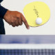 Modern ping pong paddle with a yellow background and a black hand lettered script. Personalize with your name.