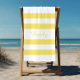 Personalized Modern Yellow Stripes Pattern Name Beach Towel.