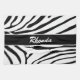 A modern and trendy design for your kitchen, this zebra print kitchen towel features black and white stripes with a black and white box in the middle. Place your name within the box. Place your order today!