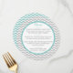 Grey and Aqua zig zag or chevron pattern design small round menu. Personalize text as preferred and add the bride and groom's name or monogram on back.