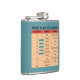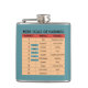 This educational geology hip flask features the Mohs Scale of Mineral Hardness. For a quick reference, this chart features the ten minerals of the Mohs scale, listing their hardness number (1-10), mineral name (talc, gypsum, calcite, fluorite, apatite, orthoclase, quartz, topaz, corundum, and diamond), and their respective chemical formulas. It also includes the positioning of several handy reference items (fingernail, penny, iron nail, glass, and streak plate). This is a handy item for a beginning mineralogist or rockhound.
