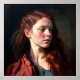 Oil painting portrait of a beautiful young Scottish woman with long dark red hair.