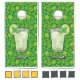 A glass of Mojito cocktail. Custom team name on each cornhole.