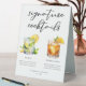 This summer signature cocktails table tent sign features simple black typography above 2 of your favorite drinks and their ingredients for your coastal wedding bar. A chic Mojito and Whiskey Sour drawing add a fun flair to your bar menu. Complete with the couple's names and date for their reception.