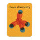 Organic chemistry magnet with an abstract orange methane molecule illustration. This geek design will make a great gift for chemist. This chemical magnet has the customizable text "I love chemistry".