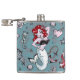 The flask features my Molly Mermaid design. I was inspired by mermaid tattoos of the 1940s, rockabilly style, and classic pinup girls!