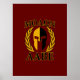 A bold golden Spartan warrior helmet Molon Labe laurels mask expression on a vibrant burgundy red graphic accent print decor for a fine custom gift idea. Come and get them!