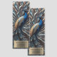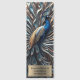Hold your place in style with this captivating peacock bookmark, a true work of art for any book lover. The design features a majestic peacock with a striking blue head and neck, its body a mosaic of golden and iridescent blue feathers. Its magnificent tail feathers fan out in a stunning display of stylized, metallic silver and bronze textures, each one a testament to intricate craftsmanship. Below, a customizable gold-toned plaque transforms this bookmark into a cherished possession from your own personal library.