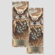 Dive into your next chapter with this captivating bookmark, showcasing a magnificent owl with piercing orange eyes, its feathers a symphony of browns, creams, and grays against swirling, earthy tones. The customizable golden plaque invites you to personalize it, transforming this exquisite design into a unique treasure or a thoughtful gift.