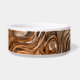 Pet bowl with a cool "liquid metal look" abstract design, and swirling, bubbling shapes in shades of orange. Can be used as a background for your own text, images and ideas. Please note this is a printed digital art image, it does not shine or contain real metal.