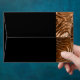 Envelope with a cool "liquid metal look" abstract design, and swirling, bubbling shapes in shades of orange on a black base. Can be used as a background for your own text, images and ideas. Please note this is a printed digital art image, it does not shine or contain real metal.