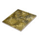 Tile with a cool "liquid metal look" abstract design, and swirling, bubbling shapes in shades of yellow gold. Can be used as a background for your own text, images and ideas. Please note this is a printed digital art image, it does not shine or contain real metal.