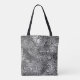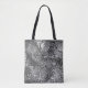 Bag with a cool "liquid metal look" abstract design, and swirling, bubbling shapes in shades of silver grey. Can be used as a background for your own text, images and ideas. Please note this is a printed digital art image, it does not shine or contain real metal.
