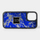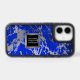 This unique phone case features your monogram in silver on a square black banner with a double silver frame. The banner is placed on an interesting background that looks as if molten silver has been randomly poured upon a bright royal blue gradient background, forming an abstract pattern. Beautiful! *Please note - the metallic look is simulated, and the case does not contain metallic paint, but only the image.