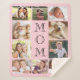 A modern photo collage pink keepsake blanket that your mom will treasure and enjoy for years. You can personalize with 10 family photos. "MOM" is written vertically down the middle in elegant typography.