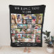 A custom photo collage keepsake blanket for that perfect mom gift. Personalize with 30 photos of her children, family, pets, memories, events, etc. and add one or two lines of text, such as "we love you mom" and your names, in elegant white typography on a black background.