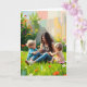 Beautiful illustration of a mom with her kids playing in the grass and flowers watercolor ai art. Happy Mother's Day card with a personalized message on the inside.