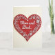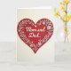 This card shows a large deep red heart centered on a creamy beige background, with a slightly raised look that makes it stand out. Across the top part of the heart, the words “Mom and Dad…” appear in small raised white lettering, easy to read and placed right where your eyes naturally land. Around the text, there’s a thin white border made of tiny leaves, little hearts, and small flower shapes, each flower marked with a soft pink dot in the middle. The heart looks smooth and full, and the gentle shading gives it a calm, cozy feel. The simple background keeps the focus on the message, so it feels direct and sincere. It’s the kind of card that helps you say “I love you and I appreciate you” without needing a lot of extra words ❤️. It feels meaningful to give because it puts your parents at the center of the moment and keeps the focus on care and closeness 🥰.