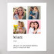 Create your own personalized mothers day gift for mom with a custom definition poster featuring four of your favorite photos in a simple collage. Add your own definition of mom, custom quote or message to this dictionary style design.