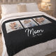 Mom Established Elegant Script Black 3 Photo Fleece Blanket
