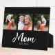 Mom Established Elegant Script Black 3 Photo Plaque