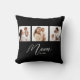 Mom Established Modern Script Black 3 Photo Throw Pillow