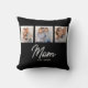Mom Established Modern Script Black 3 Photo Throw Pillow