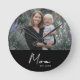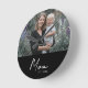 Mom Established Modern White Script Photo Round Clock