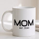 Mom Established New Mom Mug - Minimal Elegant Black Script Mom Typography - Add your custom "Est" established year date when your first child was born. Add additional years for each child.