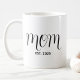 Mom Established New Mom Mug - Minimal Elegant Black Script Mom Typography - Add your custom "Est" established year date when your first child was born. Add additional years for each child.