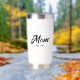 This groovy white tumbler features a black 70s style script that says 'Mom', which you can swap out for a different term or name, followed by the established line, where you can add the year your loved one became a mother. All colors and elements can be edited in the Zazzle design tool. ••• For more Mother's Day gifts, visit my store Zazzle.com/The_Pink_Pixie ••• For custom orders, message me on Zazzle