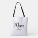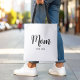 Mom Established New Mom Gift - Minimal Elegant Black Script Mom Tote Bag.