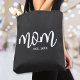 Simple Script Mom Personalized Tote Bag. Celebrate motherhood with this minimalist design featuring the word “mom” in a flowing handwritten script font on both sides in white on a black tote bag. At the bottom right, a classic serif “est. year” adds a personal touch—perfect for a mom-to-be, a new mom, or to celebrate mom any time. Tote color can be changed. Great for Mother’s Day or everyday use, this clean, modern design offers a timeless way to honor mom in style.