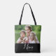 Photo tote bag featuring your favorite picture and the text “Mom Est.” with a custom year to celebrate when she became a mom. Add additional years for each child to make it uniquely hers. A sweet keepsake for Mother’s Day, birthdays, or everyday love.