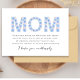A beautifully designed card featuring elegant floral typography that spells out "MOM" with grace. Delicate blooms and soft colors create a timeless, heartfelt look that feels as special as she is. Personalized just for her, it’s more than a card—it’s a keepsake of your love.