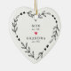 Simply perfect Christmas ornament featuring a black and white leaf line drawing heart with year est. as a Mom and year est. as a Grandma. A Wonder Christmas gift sure to be treasured for many years to come.