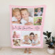 Celebrate Mom with this custom pink photo collage blanket featuring 6 photos of her children, family, pets, etc., "I Love You" or "We Love You," and family names and the year.