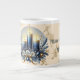 Your mom will really appreciate this beautiful blue candle mug on a sparkly ivory background with text "Merry Christmas" and "MOM"