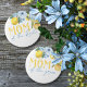 Mom of the Bride Lemon Bridal Shower Pin on Button. Featuring beautiful elegant dusty slate blue watercolor flowers and sweet yellow lemons. Check out the other matching buttons in the collection for other important guests such as the maid of honor, mother of the groom, bridesmaid's and more!