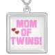 Mom of Twins Pink Text Gifts Silver Plated Necklace