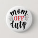 Fun ''Mom off duty'' button featuring typography script in black and red color. Cool gift for all moms. Perfect for mothers day, birthdays etc.