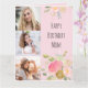 Say Happy Birthday Mom with a feminine floral birthday card, personalized with 3 of your favorite photos and a custom message. This pretty photo card has a watercolor flowers in pink and gold on a pink background with whimsical typography. The template is set up for you to add your pictures, which are displayed in square / instagram format in a simple grid style photo collage. The message on the front is editable, if you prefer to say mama or mommy for example and so is the message inside.