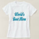Shirt with World's best Mom in 3D sky blue text. Shirt available in several styles and colors with long or short sleeves.