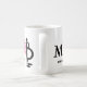 MOM TO BE Cute Christian Coffee Mug with Christian Bible verse and CUSTOMIZABLE TEXT, showing the characters M2B. The B is made to look like a side profile of a pregnant mom, complete with big feet! Above the pink 2 is customizable text which reads Happy Mom-To-Be, which you can personalize with a name of similar length. There is also a placeholder name at the bottom, and a placeholder Bible verse which you can personalize with a message. This is cute, fun, girly coffee mug to celebrate a special season of life. Matching gifts available.